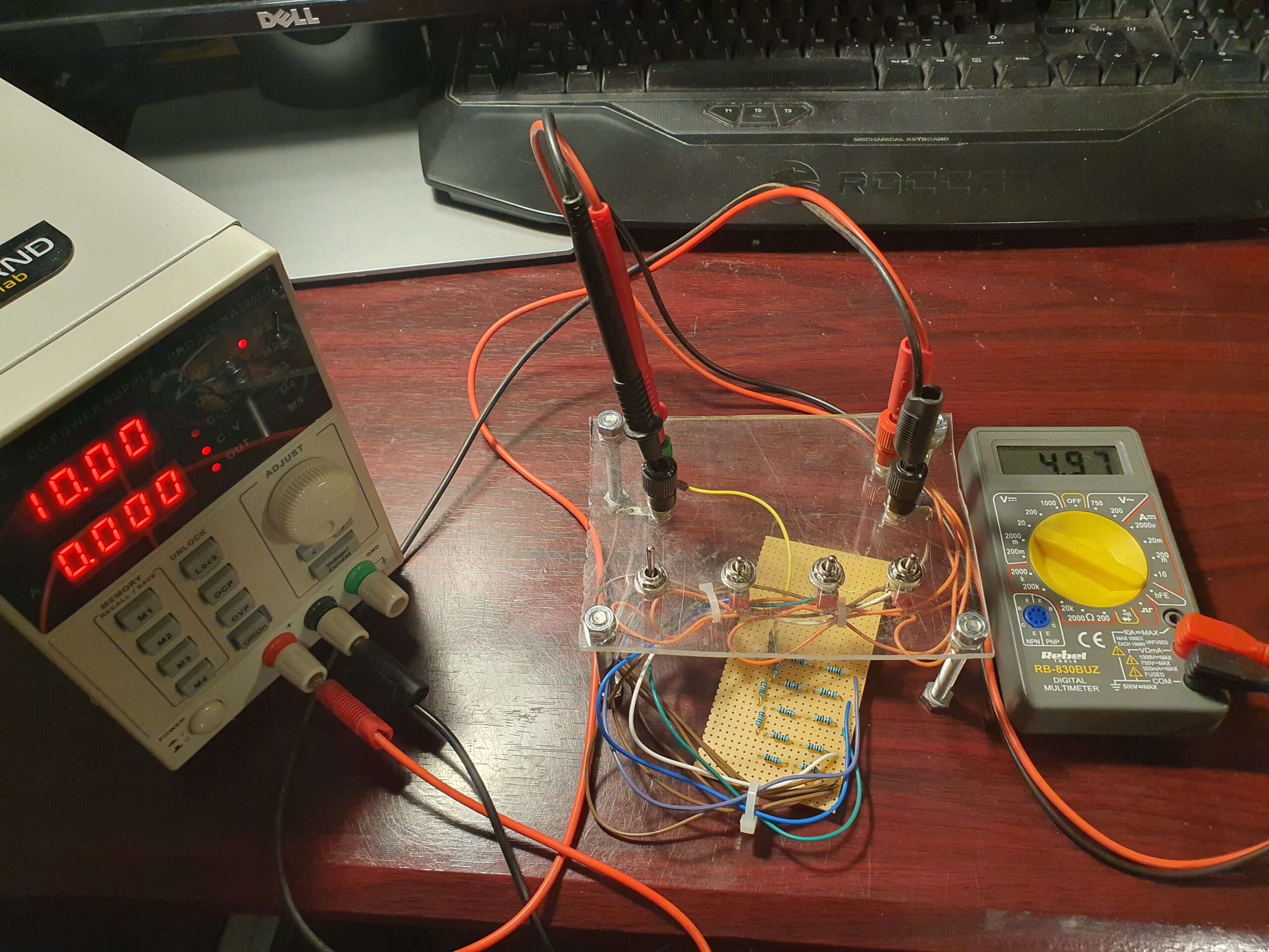 Paigaldasin paar lülitit redeli bittide lülitamiseks 0V ja 10V vahel ja mõned kiirühenduse pesad. Toitepinge 10V teeb igasugused arvutused lihtsaks.